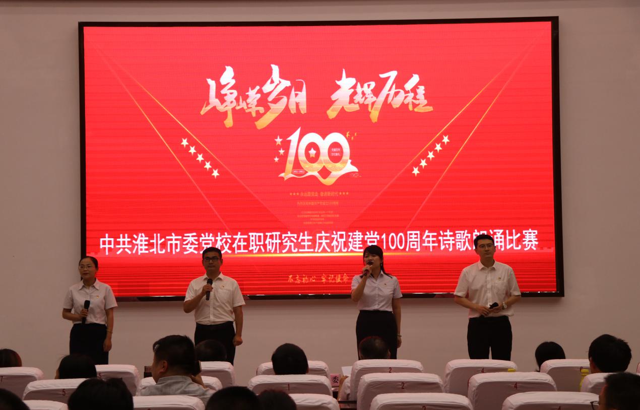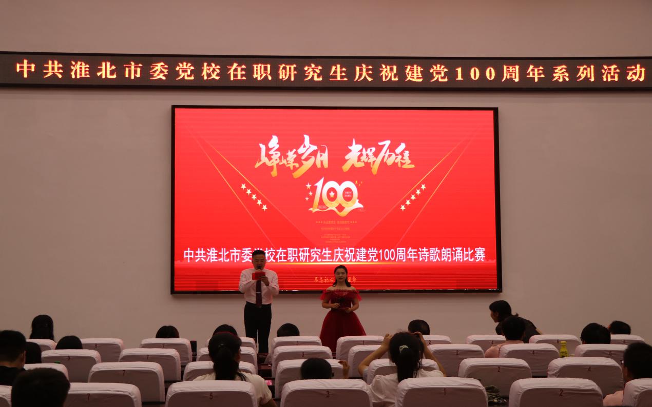 感悟經典魅力,傳承紅色基因。6月26日下午,“崢嶸歲月光輝歷程”淮北市委黨校在職研究生慶祝建黨100周年詩歌朗誦比賽在二號報告廳成功舉辦。2019級、2020級在職研究生學員近200人觀看了比賽。