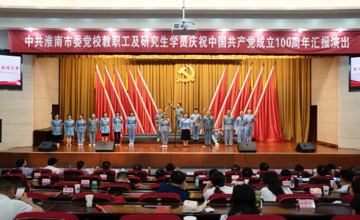 百年風華波瀾壯闊,千秋偉業(yè)歷久彌堅。6月27日下午,中共淮南市委黨校研究生學員慶祝中國共產(chǎn)黨成立100周年匯報演出在報告廳隆重舉行。省委黨校(安徽行政學院)研究生部副主任蔣俊、學員科科長馬君、博士張少峰;中共滁州市委黨校副校長姜小平、研究生辦公室主任蔣傳文;中共銅陵市委黨校研究生辦公室主任倪國娟、博士許宮秀子;中共淮南市委黨校常務副校長夏新宇、副校長孫方華、王慶斌,教育長周衛(wèi)東出席活動。全體演職人員用慷慨激昂的頌歌、昂揚向上的精神風貌向中國共產(chǎn)黨百年華誕獻上了最真摯的祝福。