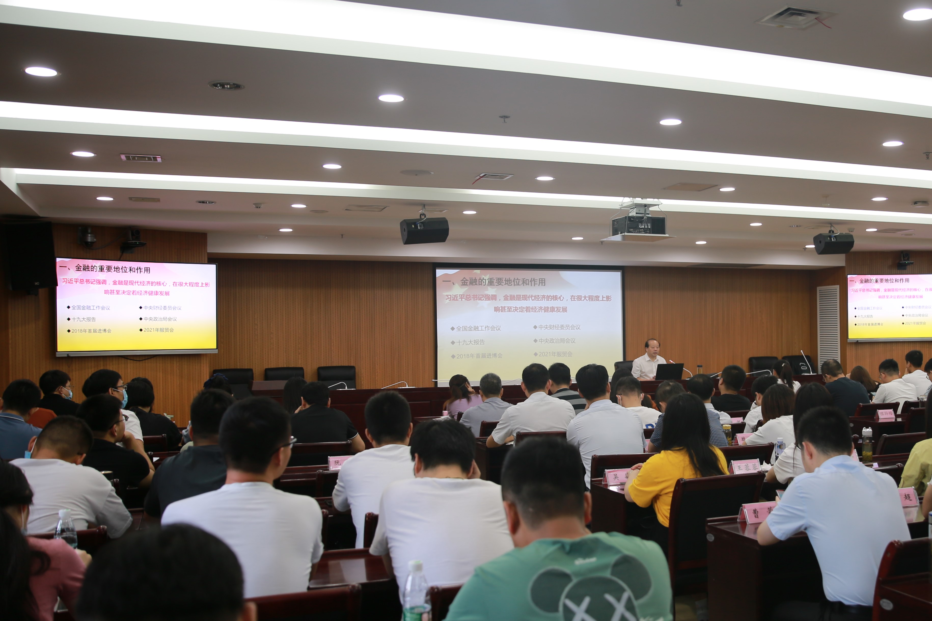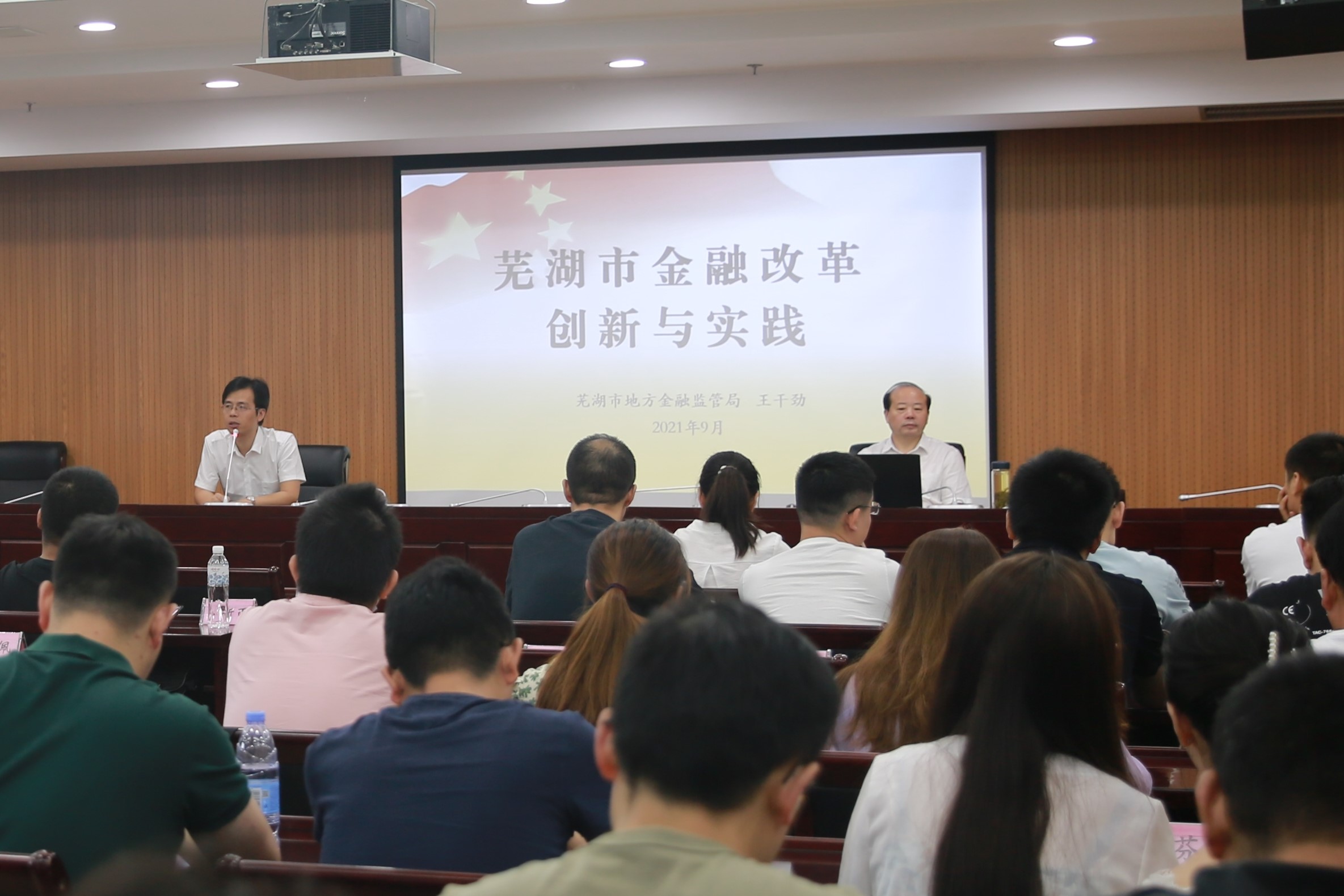 王干勁局長(zhǎng)從實(shí)際工作出發(fā),圍繞金融的重要地位和作用、“十三五”以來蕪湖市金融工作開展情況和取得的成就、以及推動(dòng)蕪湖多層次資本市場(chǎng)體系建設(shè)工作等方面,進(jìn)行了精彩的剖析和講解。王局長(zhǎng)語(yǔ)言精煉、談吐風(fēng)趣,讓學(xué)員們了解并掌握了當(dāng)前國(guó)家和蕪湖在金融領(lǐng)域的政策和措施,給原本高度專業(yè)化的授課增添了本土化元素。
