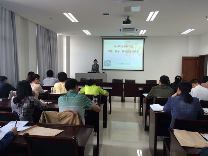 圖為2015年在職研究生學籍、教務、微機業務培訓工作會議報道